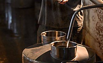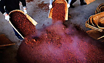 基酒生产周期长达一年,共分清蒸下沙、混蒸糙沙共二次投料,一至七个烤酒轮次,概括为一年一个生产周期,二次投料、九次蒸煮、八次发酵、七次取酒,历经春、夏、秋、冬一年时间。