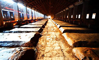 清蒸下沙一次,混蒸糙沙一次,熟糟→上甑蒸酒六个轮次循环过程中有六次封窖发酵,每加曲入窖发酵一个月,共八次发酵。